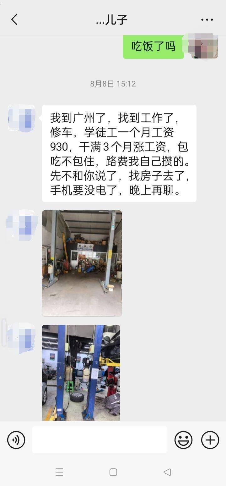 郭先生的儿子发消息称他到广州找到了工作(受访者供图)