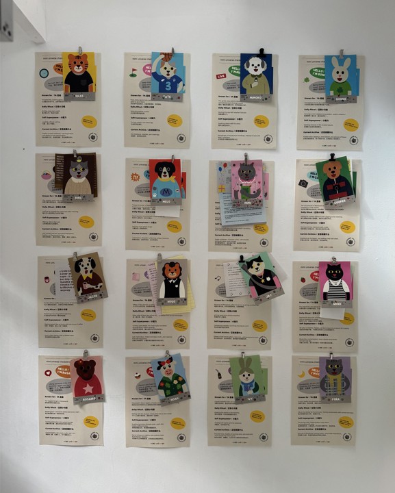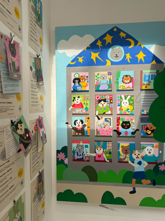 “遇见你的喵喵连接”互动环节也是伸手可得,观众可以在角色档案旁,留下心动的标记,随着这些微小的参与不断累积,展览本身也成为一个动态生长的“社会档案”。有限的空间中无限的想象得以绽放,观众的留言簿上,大家分明地感受到这里的小小惊喜与大大诗意。