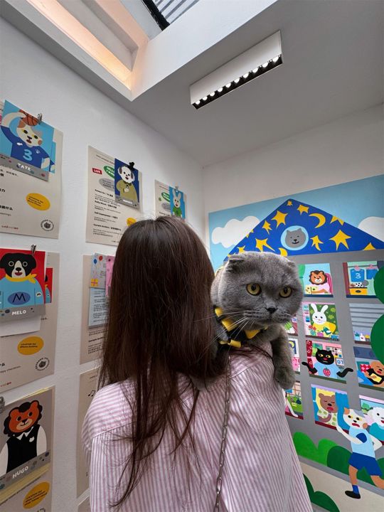 艺术家YUANYUAN抱着同款宠物MIMI来展厅巡查
