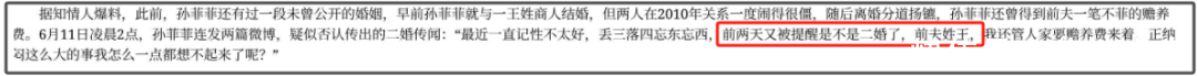 另外,有消息称孙菲菲与史宏结婚之前都有婚史,关于二婚质疑,孙菲菲在当年有回应。她发文调侃称自己都不记得有一位姓王的前夫,也不记得有拿过人家的巨额赡养费,间接辟谣了二婚说法。